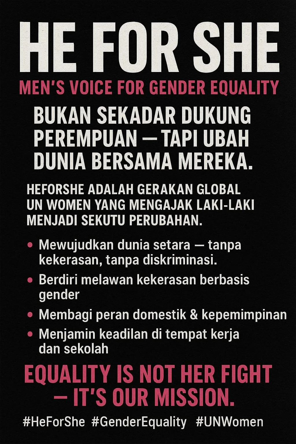 Tujuannya adalah mengajak laki-laki dan anak laki-laki untuk berperan aktif dalam memperjuangkan kesetaraan gender — bukan hanya sebagai penonton, tetapi sebagai sekutu dan agen perubahan.