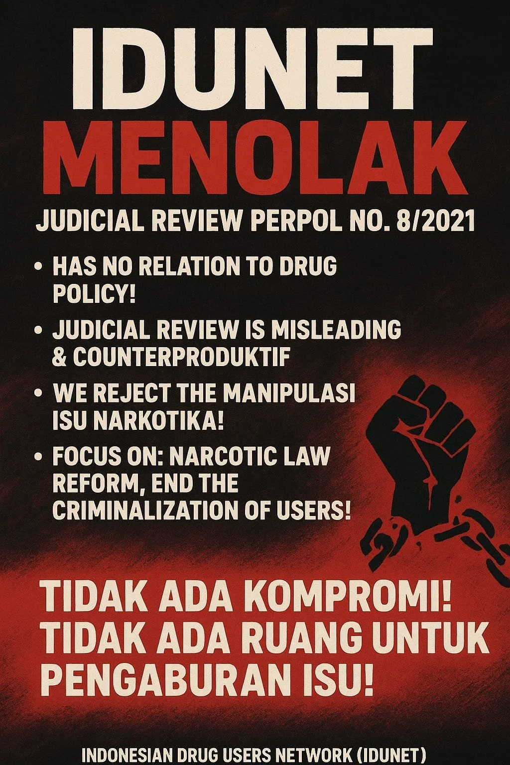 We, the Indonesian Drug Users Network (IDUNET), firmly state: